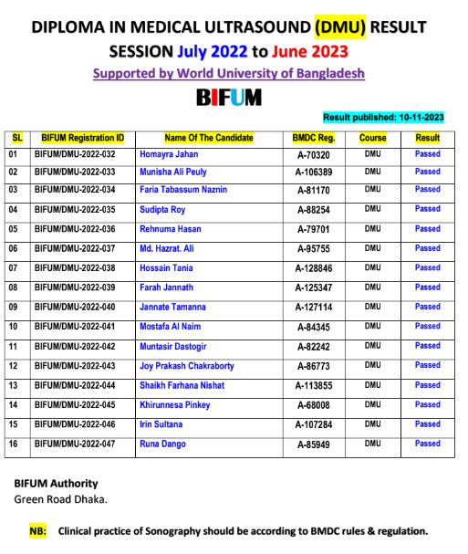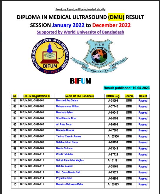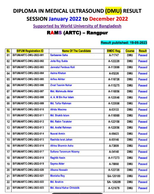 DMU RESULT